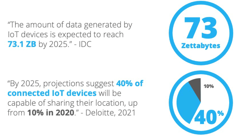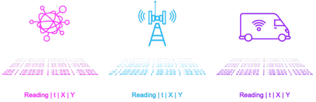 The first generation of IoT data were readings over time. A sensor that is capturing a reading like the temperature of a device would do so in meted time intervals, allowing monitoring for anomalies. The next generation of IoT are readings over time and space. Sensors are increasingly taking a reading with stamps on the time and location of the item. Most items are in motion: inventory, vehicles, planes, people, etc. Even things that are fixed in location like crops where sensors take readings of soil moisture require a longitude and latitude in order to send irrigation equipment to the right location when needed.