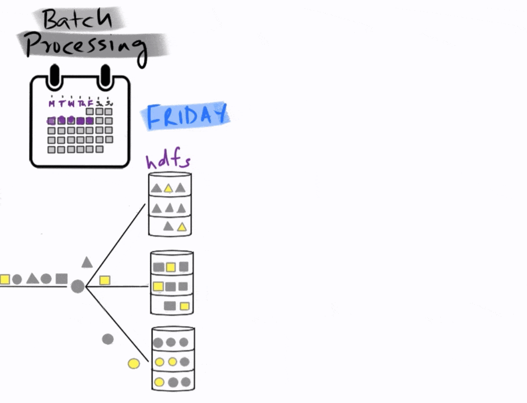 At the end of the day on Friday, the analytics team fires off a scheduled MapReduce job that identifies anomalies. This is a complicated piece of code that is mapped to the different data partitions in order to identify anomalies, and then reduced to find the final total, which then goes into a report that is submitted on Monday.