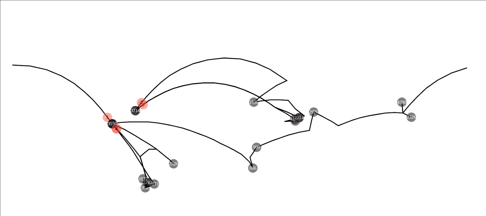 The response’s info field is a string of embedded SVG content html with CSS and animated motion paths. The speed of the SVG animation can be adjusted to be practical and be able to track and simulate real time logistics. It is important to note that the video speed is directly proportional to the weights of the underlying graph, i.e., the results can directly be used in tracking and scheduling of deliveries in real time. See SOURCE CODES section for the html file with SVG scripts. Here is what we get when we load the solver generated html file into an internet browser – Red dots indicate the delivery aircrafts originated from two airports and black circles are the destination (demand) airports.
