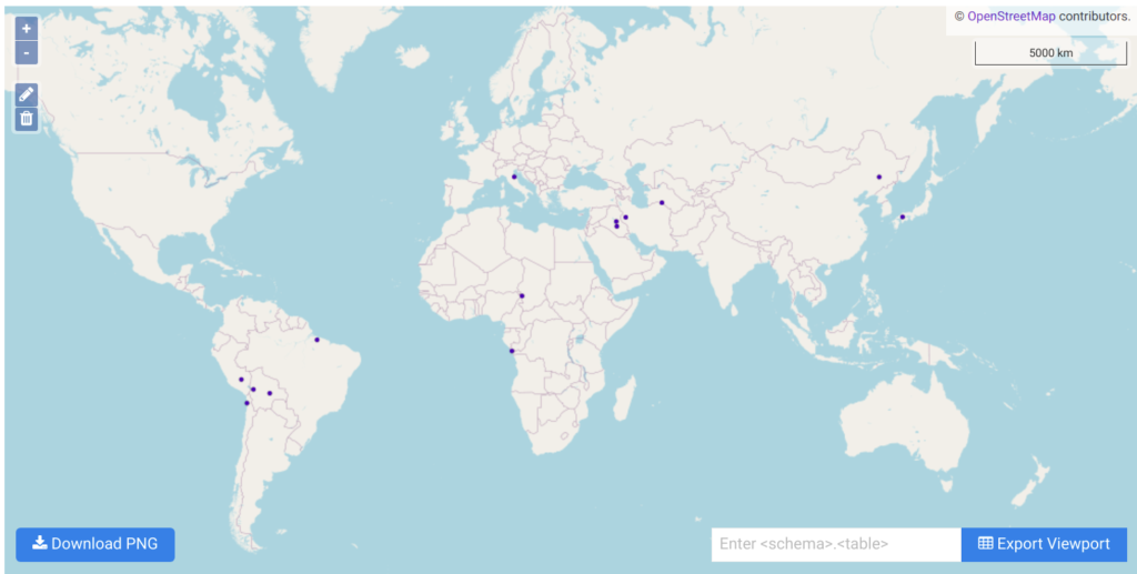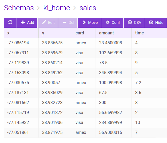 If we’d like to visually inspect the distribution of sales we could aggregate over spatial buckets directly without having to employ additional sql filters.