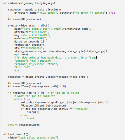 Figure: Python calls for create video API using tracks and class break visualization styles, source is appended at the end of the document.4
