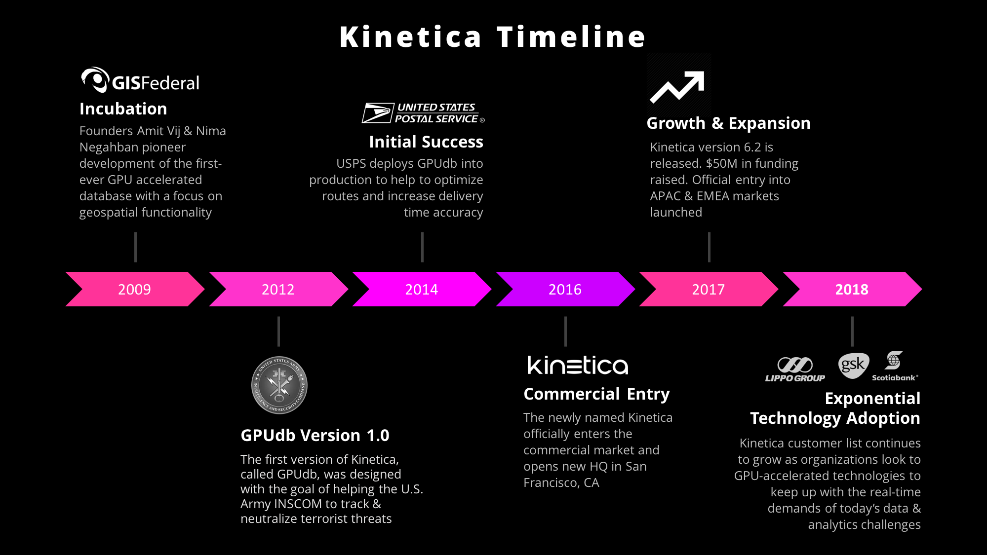 Fast forward to today: we have re-branded the company to Kinetica and moved our headquarters to San Francisco, so that we can focus on being the leading GPU-accelerated database provider for those organizations that need to make critical decisions instantaneously based on the influx of their data.