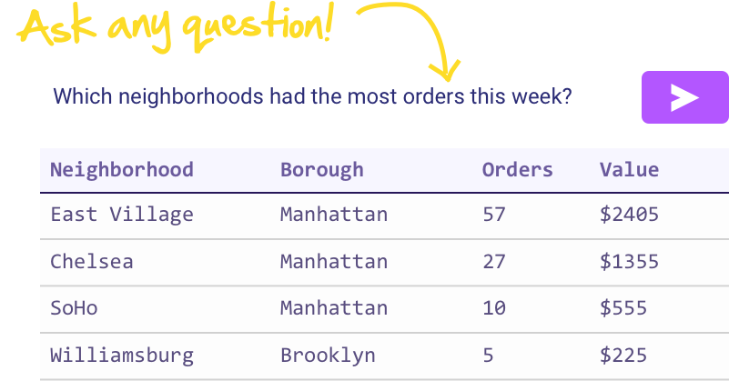 You’ll be shocked at how quickly SQL-GPT is able to answer completely unknown questions – and without having to build tedious pipelines or engage in extensive data modeling and tuning.