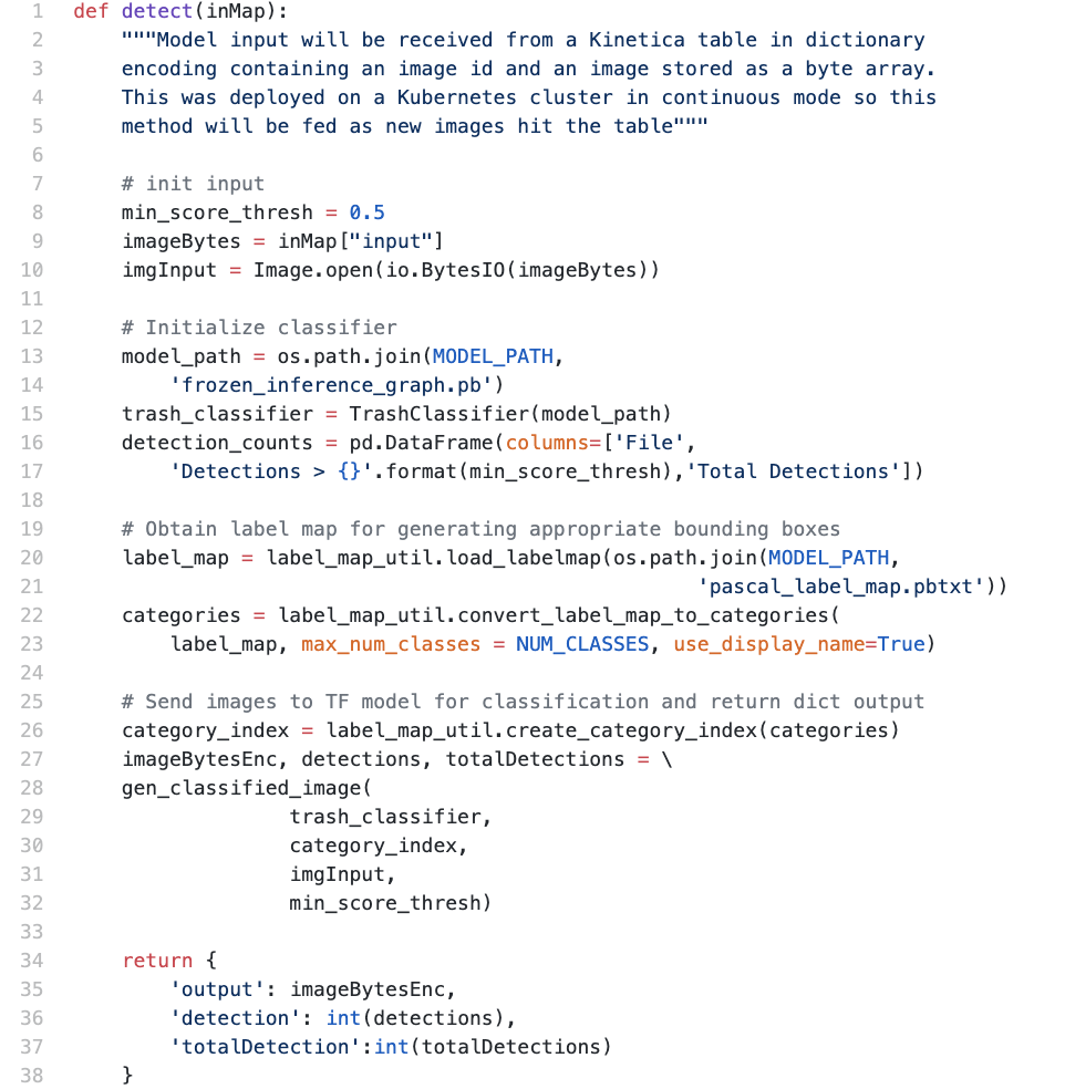 Now that we have developed an awesome convolutional neural network, capable of detecting trash in images from a drone, how do we actually take it to production and derive the value for which it was originally built? This is a challenge many data scientists and organizations face today. Let’s look at how we accomplish this in Kinetica.