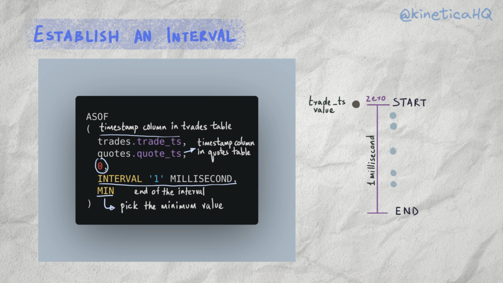 ON ASOF ( trades.trade_ts, quotes.quote_ts, INTERVAL '0' SECOND, INTERVAL '1' MILLISECOND, MIN )