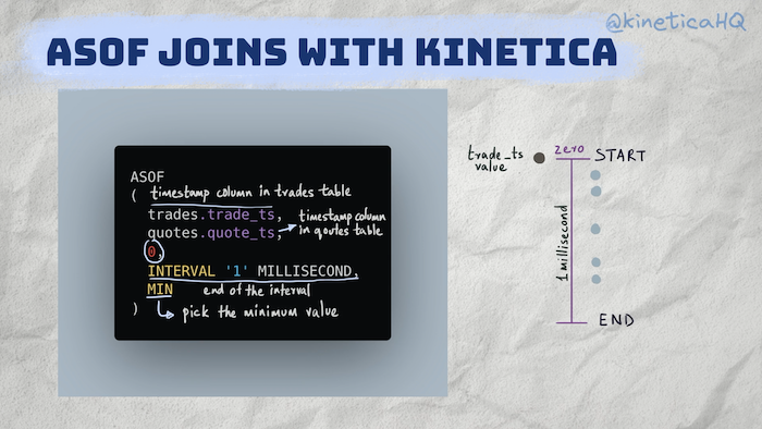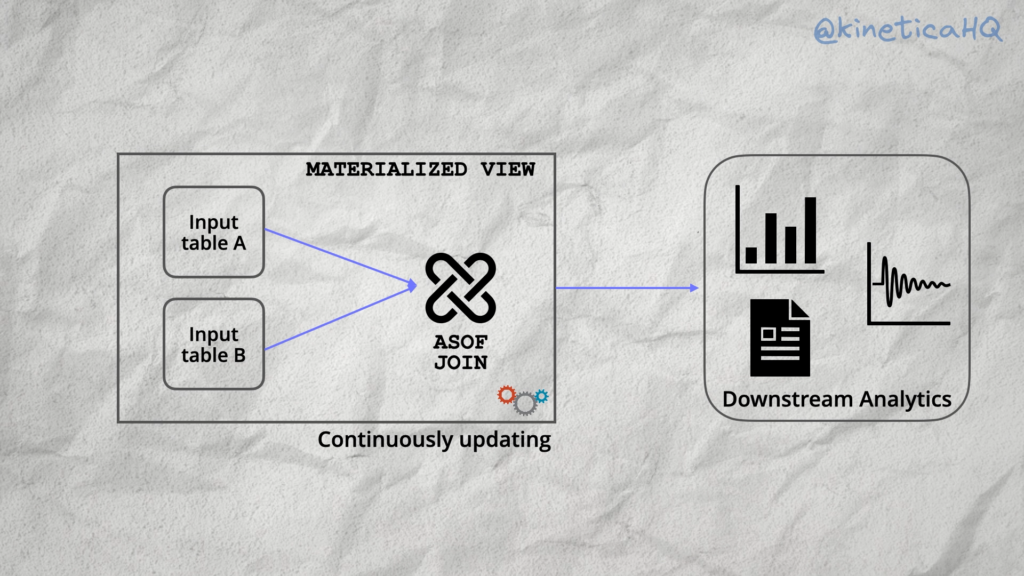 ASOF joins are computationally expensive to perform but Kinetica is an exceptionally fast database that can perform these joins and keep them updated in real time as new data streams into the input tables.
