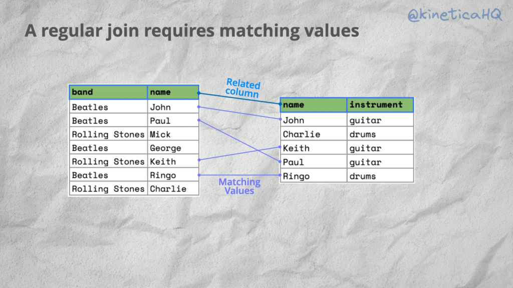 Combining two or more tables using values from a related column is one of the most common tasks when analyzing data. This is typically done by matching the values in the related column(s).