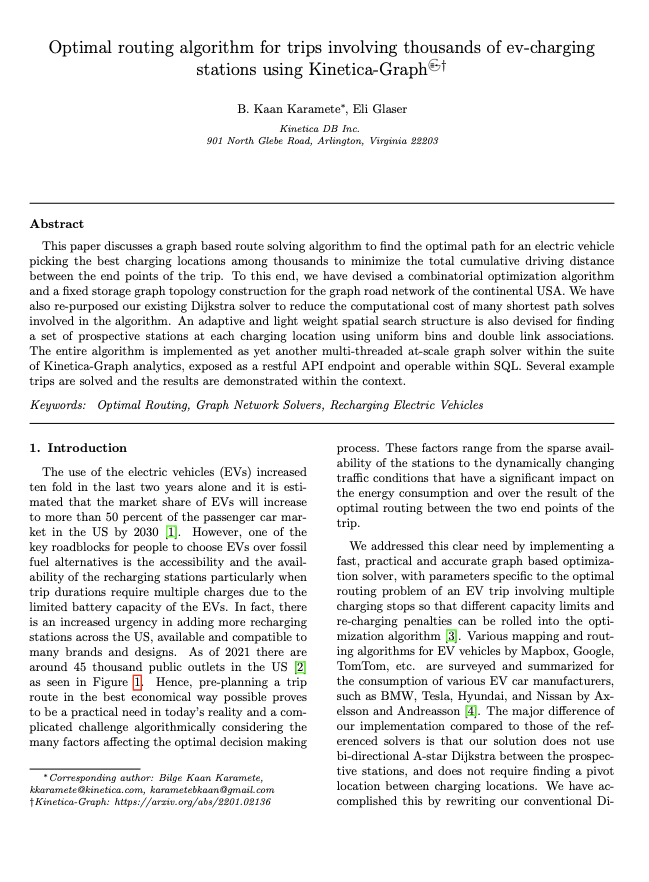 Optimal routing algorithm for trips involving thousands of ev-chargingstations using Kinetica-Graph